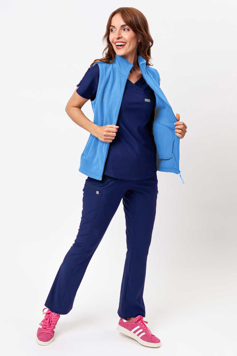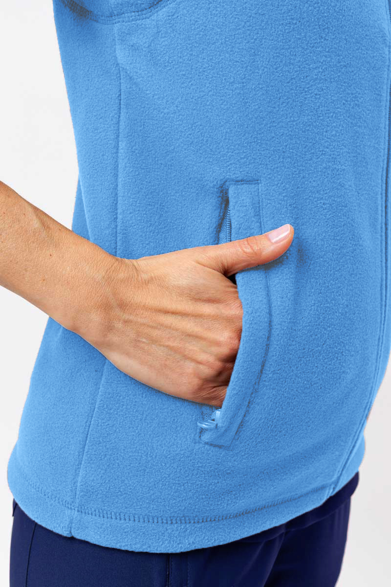 Fleecová vesta je skvelým doplnkom vašej pracovnej uniformy. Bude to užitočné najmä v mierne chladnejších dňoch, kedy je potrebné ďalšie izolácie, ale nie tak veľké, aby bolo nutné obliecť ďalšiu vrstvu odevu s dlhými rukávmi. Ak si chcete okrem dodatočné izolácie zachovať tiež vysokú pohyblivosť hornej časti tela, bude veľmi dobrou voľbou fleecová vesta. Tielko má dve priestranné vrecká s kvalitnými zipsami. Praktický viacúčelový produkt!