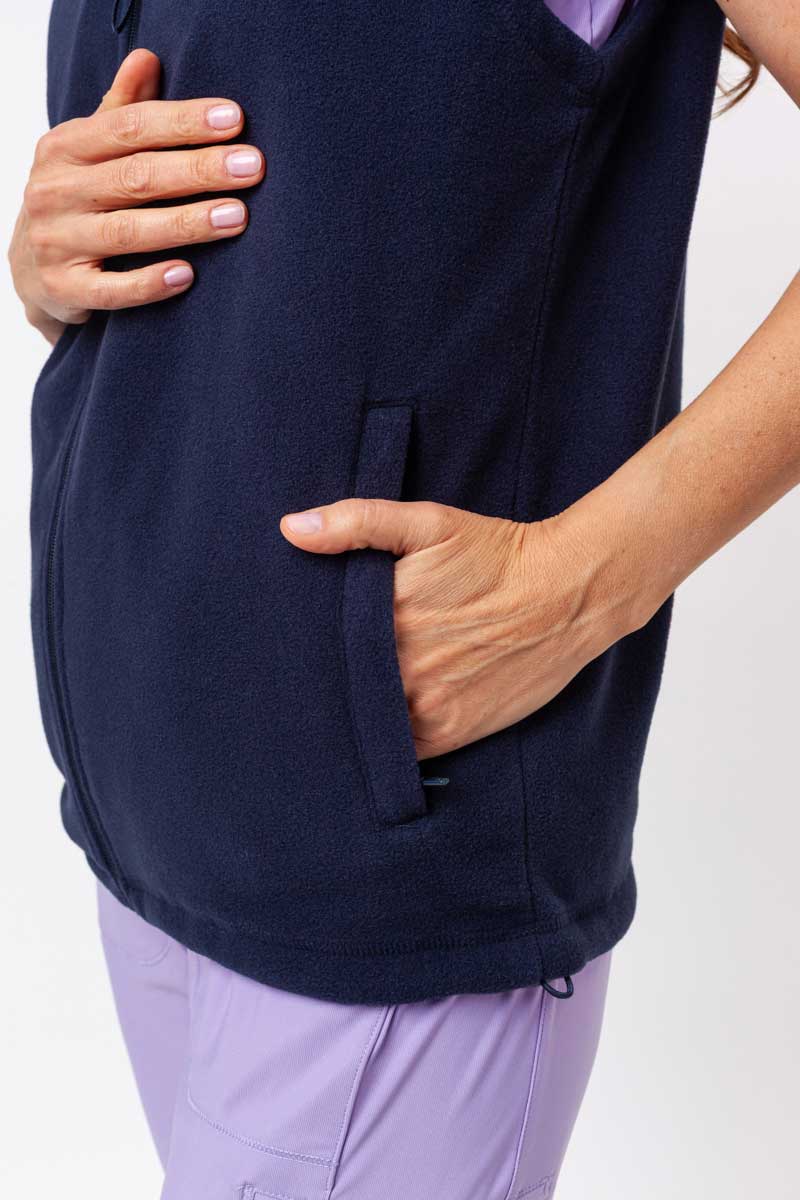 Fleecová vesta je skvelým doplnkom vašej pracovnej uniformy. Bude to užitočné najmä v mierne chladnejších dňoch, kedy je potrebné ďalšie izolácie, ale nie tak veľké, aby bolo nutné obliecť ďalšiu vrstvu odevu s dlhými rukávmi. Ak si chcete okrem dodatočné izolácie zachovať tiež vysokú pohyblivosť hornej časti tela, bude veľmi dobrou voľbou fleecová vesta. Tielko má dve priestranné vrecká s kvalitnými zipsami. Praktický viacúčelový produkt!