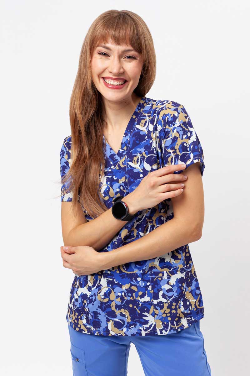 Vzor na ideálnu pracovnú blúzu? Máme ho! Model z kolekcie Sunrise Uniforms Prints dodá šmrnc tvojmu pracovnému outfitu – bez ohľadu na špecializáciu či osobný štýl. Farebný, veselý vzor je len začiatok. Táto výnimočná blúza s moderným strihom, výstrihom do „V“ a tromi vreckami – jedným na hrudi a dvoma dolu – ti pomôže vyniknúť a uniknúť z pracovnej monotónnosti. Elastický materiál s prímesou spandexu je odolný voči pokrčeniu (menej žehlenia), odvádza vlhkosť a rýchlo schne, čím ti zabezpečí maximálny komfort, aby ťa nič nevyrušovalo pri práci. Teraz zostáva otázka – ktorý vzor si vyberieš?