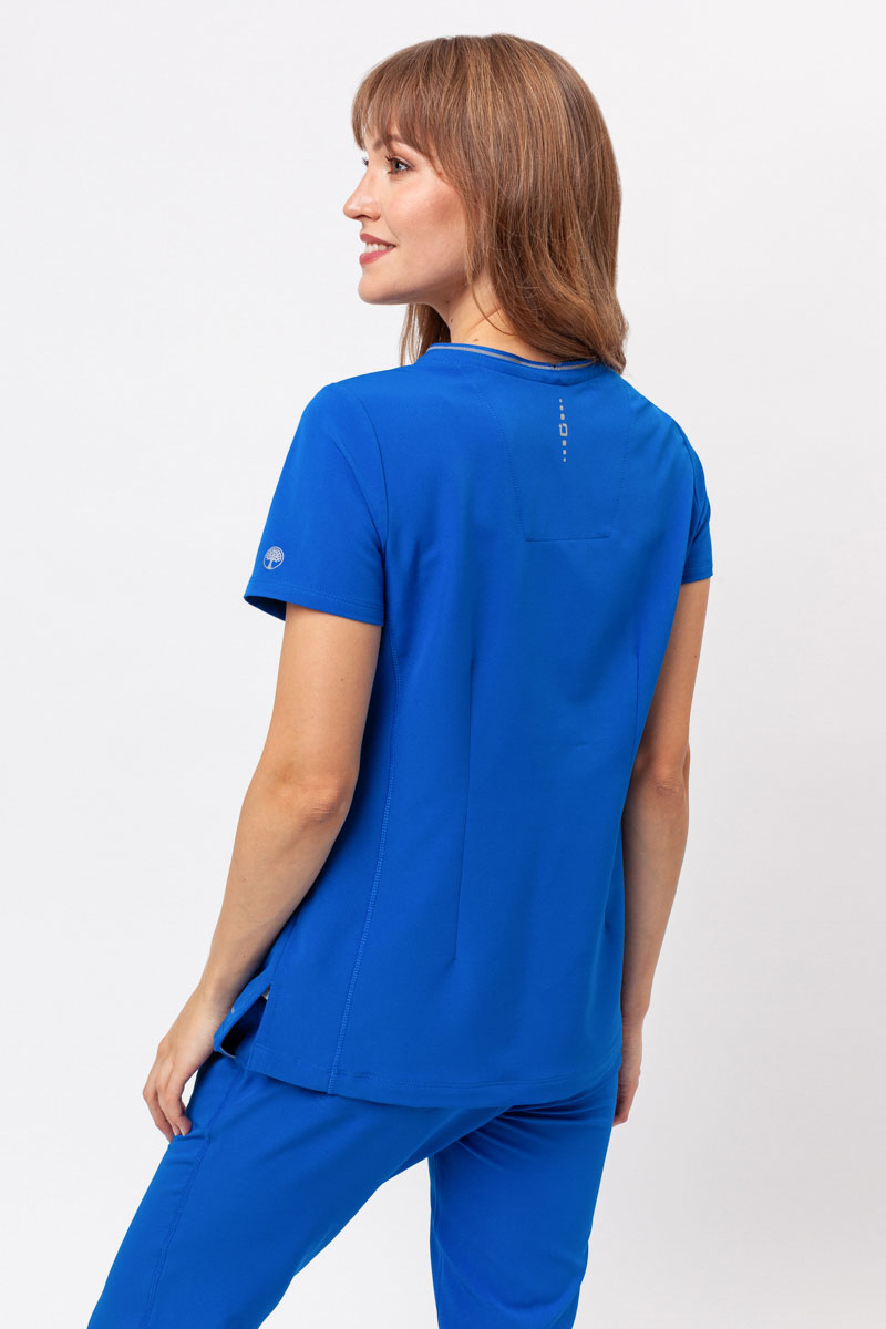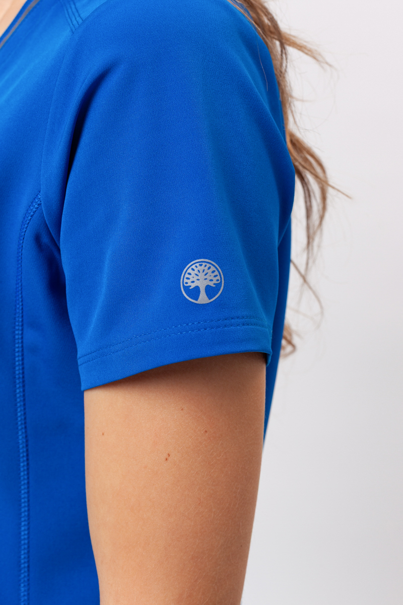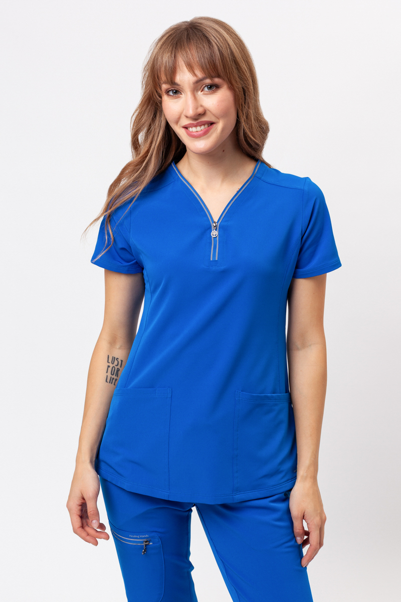 Blúzka Sonia zaujme už od výstrihu – asymetrický so subtílnym zipsom dodáva blúzke osobitosť a moderný vzhľad. Tvarovaný strih a modelujúce švy jemne zvýrazňujú postavu, zatiaľ čo bočné rozparky dodávajú ľahkosť. Mäkká tkanina s 4-smerným pružením odvádza vlhkosť, je odolná voči stratám farby a zaručuje plnú voľnosť pohybu. Tri praktické vrecká, z toho jedno s priehradkou na pero, spájajú funkčnosť s premysleným dizajnom. Jemné reflexné lemovanie a nenápadné logo na zipsu dotvárajú celok a dodávajú blúzke štýl, ktorý ju odlišuje v každom pracovnom prostredí.
