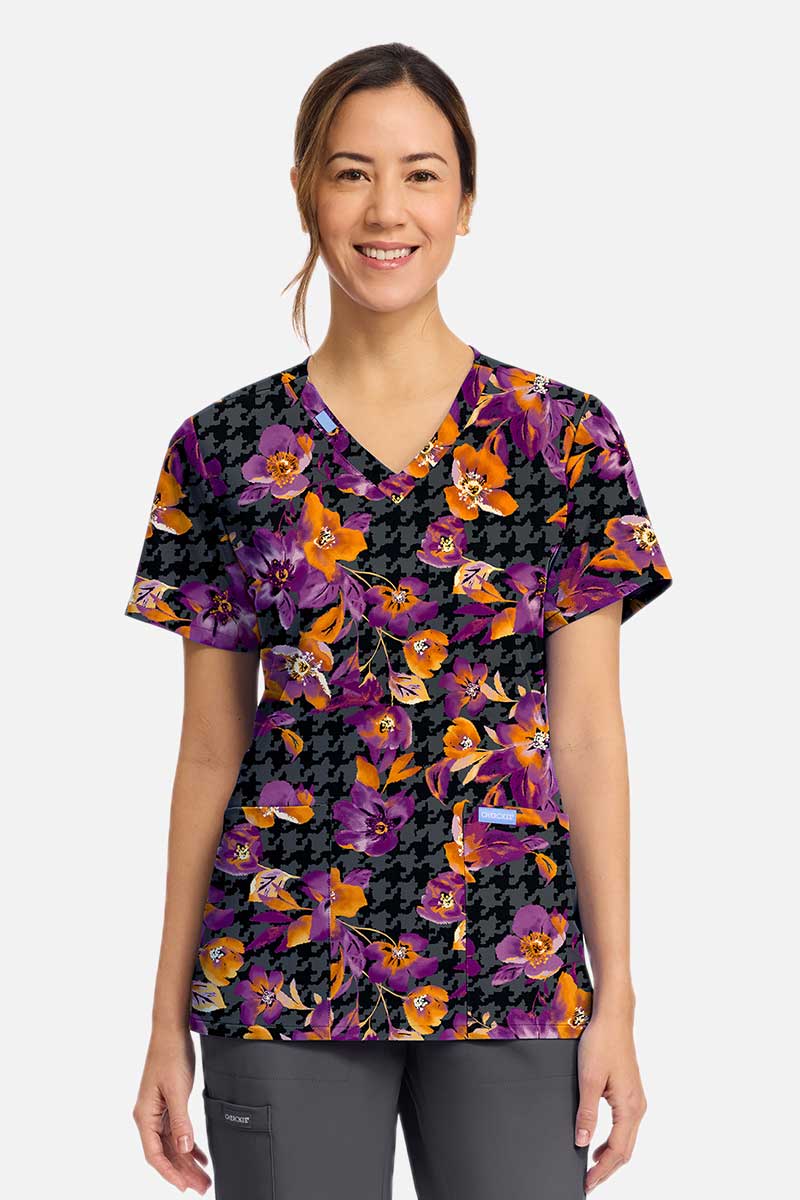 Dámska lekárska halena Cherokee Prints V-neck Velvet Floral-1