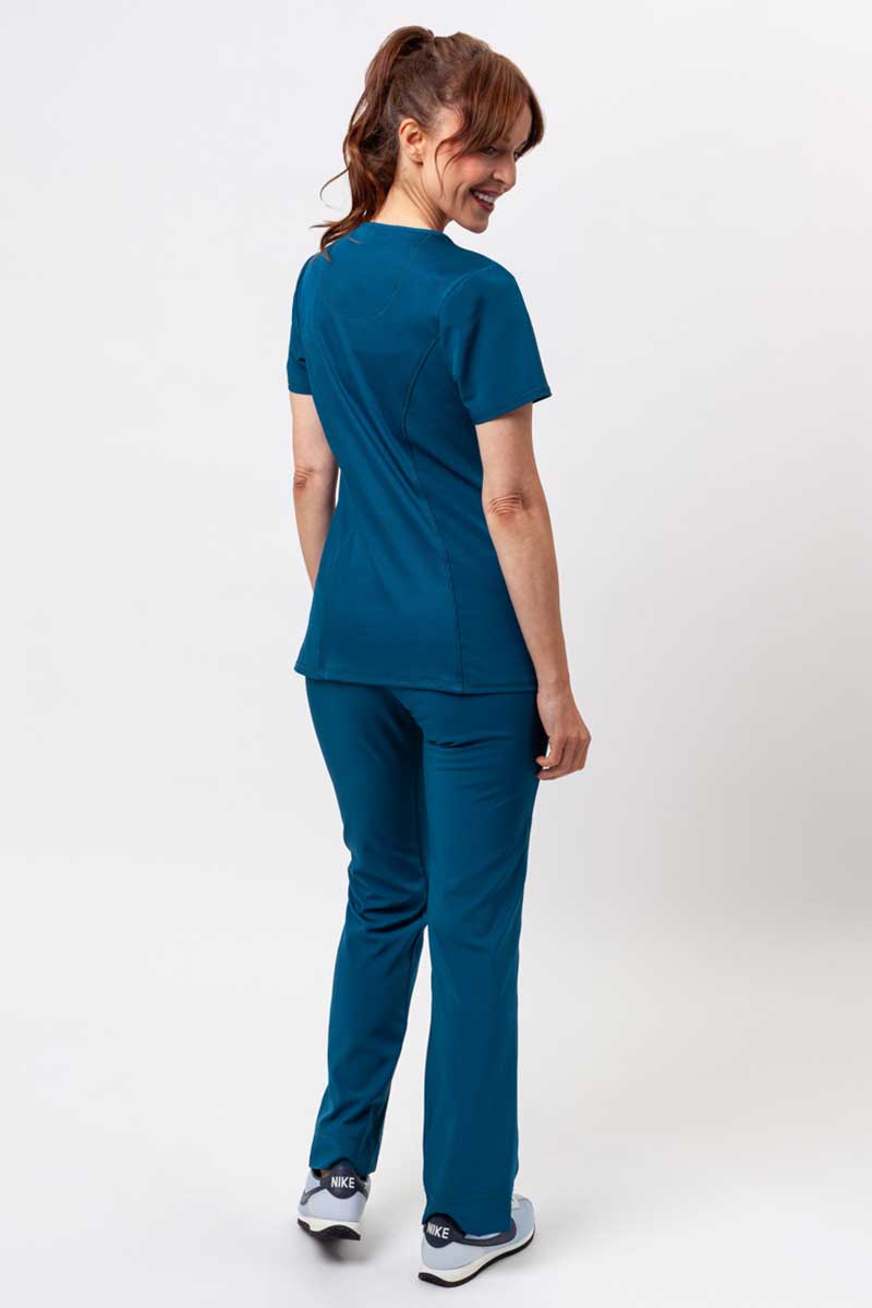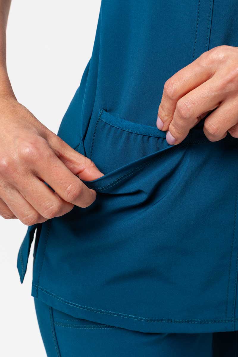 Pohodlné. Módne. Funkčné. Dokonale prispôsobené. Ženský. Je ťažké opísať lekársku súpravu Cherokee Infinity len jedným slovom. Ak by sme však museli, použili by sme slovo "nenahraditeľná". Osvedčí sa v každej situácii. Vďaka použitiu elastického materiálu nohavice a blúzka dokonale sedia, zvýrazňujú siluetu, ale neobmedzujú v pohybe. Vrecká sú povinnou výbavou všetkých zdravotníkov - tu vám nebudú chýbať. Ďalšou zaujímavosťou je špeciálne navrhnuté pútko na preukaz totožnosti v blúzke. Módne prešívanie, rebrovanie, jemné rozparky, vetracie vložky - všetky prvky súpravy sa navzájom dopĺňajú a vyčarujú dokonalý outfit na každý deň v práci.