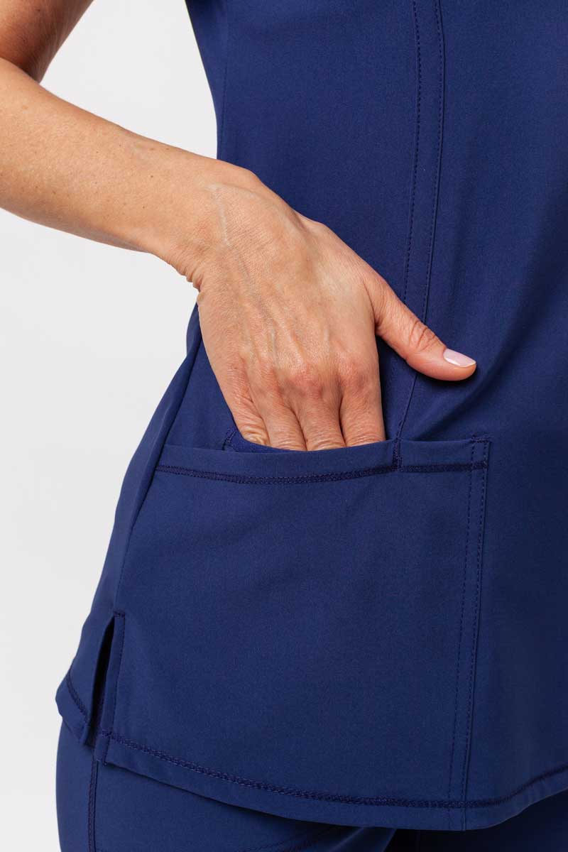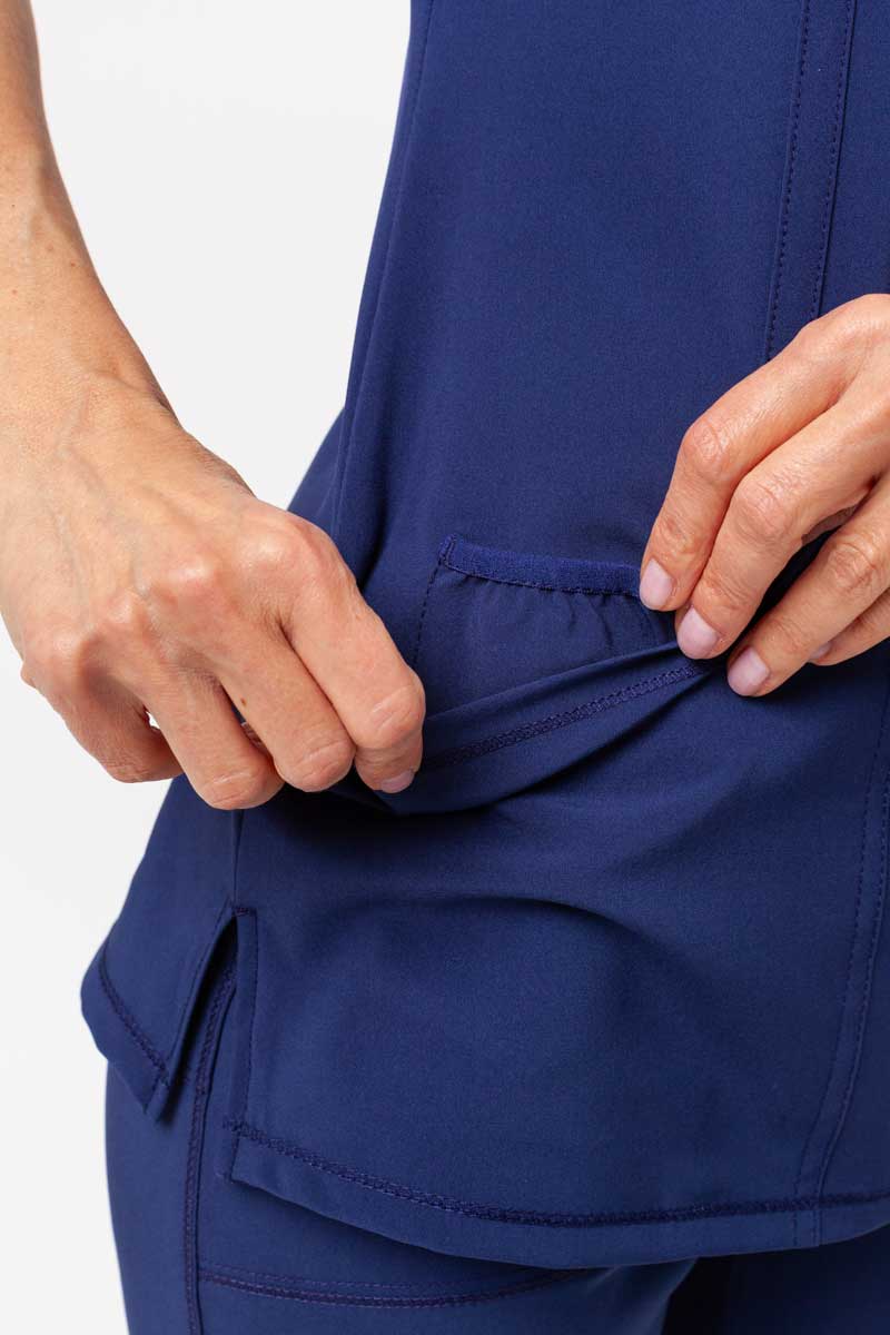 Pohodlné. Módne. Funkčné. Dokonale prispôsobené. Ženský. Je ťažké opísať lekársku súpravu Cherokee Infinity len jedným slovom. Ak by sme však museli, použili by sme slovo "nenahraditeľná". Osvedčí sa v každej situácii. Vďaka použitiu elastického materiálu nohavice a blúzka dokonale sedia, zvýrazňujú siluetu, ale neobmedzujú v pohybe. Vrecká sú povinnou výbavou všetkých zdravotníkov - tu vám nebudú chýbať. Ďalšou zaujímavosťou je špeciálne navrhnuté pútko na preukaz totožnosti v blúzke. Módne prešívanie, rebrovanie, jemné rozparky, vetracie vložky - všetky prvky súpravy sa navzájom dopĺňajú a vyčarujú dokonalý outfit na každý deň v práci.