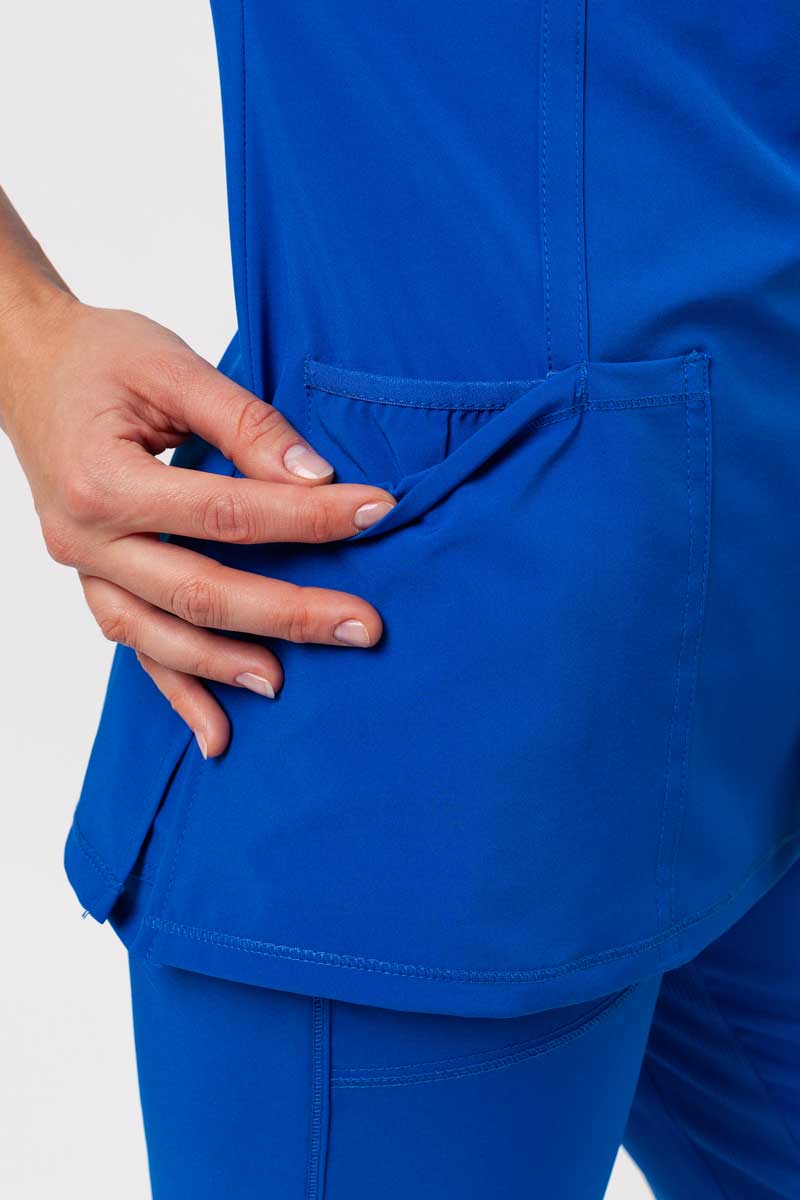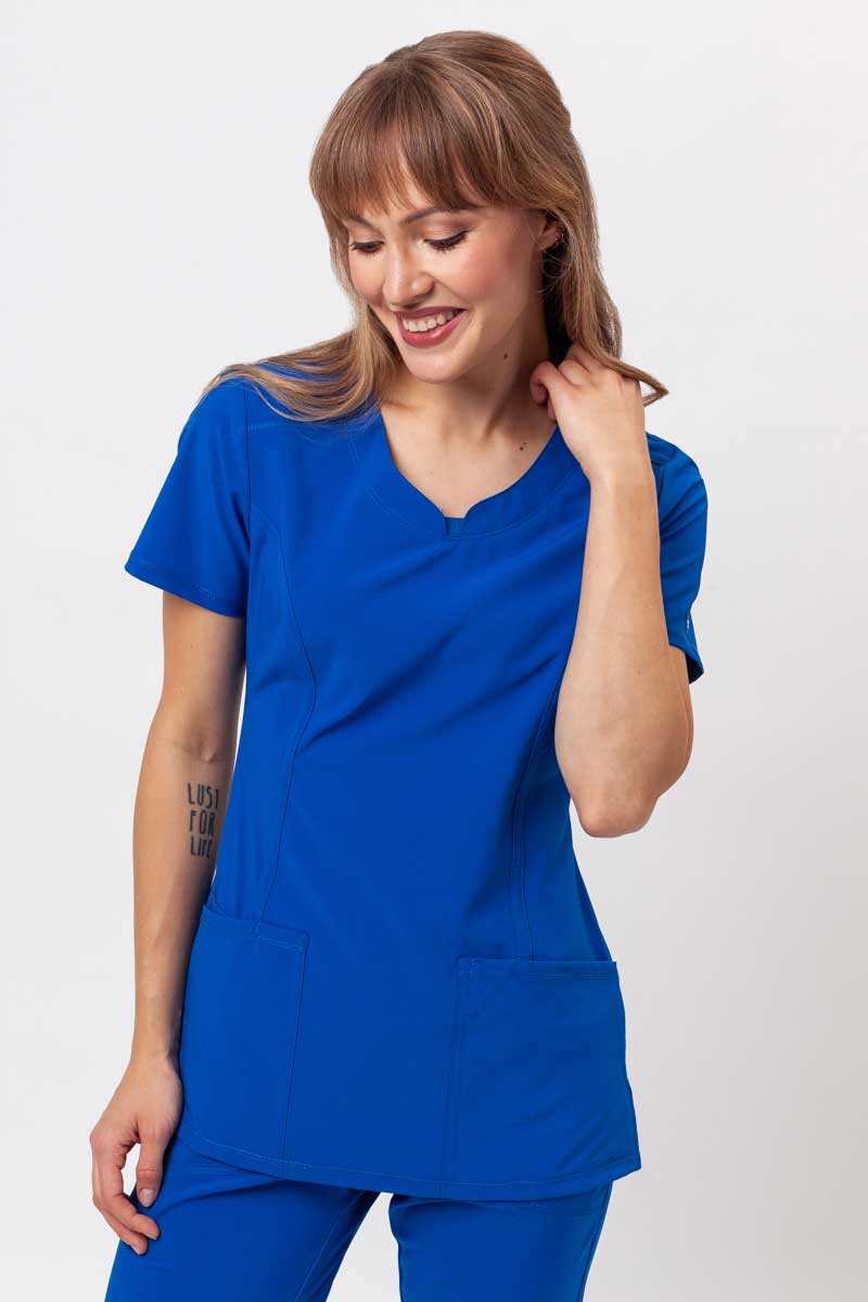 Pohodlné. Módne. Funkčné. Dokonale prispôsobené. Ženský. Je ťažké opísať lekársku súpravu Cherokee Infinity len jedným slovom. Ak by sme však museli, použili by sme slovo "nenahraditeľná". Osvedčí sa v každej situácii. Vďaka použitiu elastického materiálu nohavice a blúzka dokonale sedia, zvýrazňujú siluetu, ale neobmedzujú v pohybe. Vrecká sú povinnou výbavou všetkých zdravotníkov - tu vám nebudú chýbať. Ďalšou zaujímavosťou je špeciálne navrhnuté pútko na preukaz totožnosti v blúzke. Módne prešívanie, rebrovanie, jemné rozparky, vetracie vložky - všetky prvky súpravy sa navzájom dopĺňajú a vyčarujú dokonalý outfit na každý deň v práci.