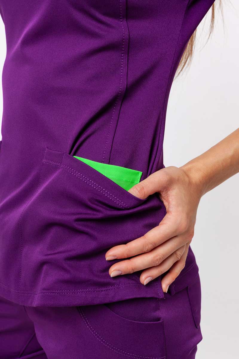 Niekedy v práci potrebuješ nielen pohodlie, ale aj istotu, že tvoj odev zvýrazní profesionalitu a dodá ti energiu na celý deň. Blúza s výstrihom v tvare písmena V a jemným prešívaním spolu s nohavicami s mierne rozšíreným strihom a nastaviteľným pásom tvoria dvojicu, ktorá spája voľnosť pohybu so ženským štýlom. Vyrobené z elastickej, priedušnej tkaniny, ktorá odvádza vlhkosť, zabezpečujú sviežosť a komfort od prvej až po poslednú minútu služby. Praktické vrecká na blúze aj nohaviciach sú zárukou, že všetko, čo potrebuješ, máš vždy poruke. Táto súprava je viac než len uniforma – je to tvoja denná dávka istoty a pohodlia.