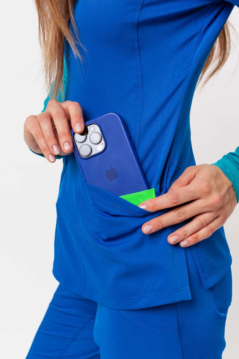 Niekedy v práci potrebuješ nielen pohodlie, ale aj istotu, že tvoj odev zvýrazní profesionalitu a dodá ti energiu na celý deň. Blúza s výstrihom v tvare písmena V a jemným prešívaním spolu s nohavicami s mierne rozšíreným strihom a nastaviteľným pásom tvoria dvojicu, ktorá spája voľnosť pohybu so ženským štýlom. Vyrobené z elastickej, priedušnej tkaniny, ktorá odvádza vlhkosť, zabezpečujú sviežosť a komfort od prvej až po poslednú minútu služby. Praktické vrecká na blúze aj nohaviciach sú zárukou, že všetko, čo potrebuješ, máš vždy poruke. Táto súprava je viac než len uniforma – je to tvoja denná dávka istoty a pohodlia.