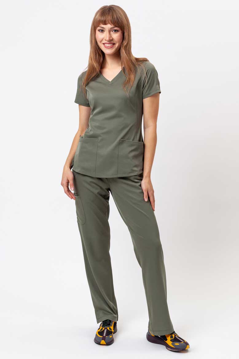 Niekedy v práci potrebuješ nielen pohodlie, ale aj istotu, že tvoj odev zvýrazní profesionalitu a dodá ti energiu na celý deň. Blúza s výstrihom v tvare písmena V a jemným prešívaním spolu s nohavicami s mierne rozšíreným strihom a nastaviteľným pásom tvoria dvojicu, ktorá spája voľnosť pohybu so ženským štýlom. Vyrobené z elastickej, priedušnej tkaniny, ktorá odvádza vlhkosť, zabezpečujú sviežosť a komfort od prvej až po poslednú minútu služby. Praktické vrecká na blúze aj nohaviciach sú zárukou, že všetko, čo potrebuješ, máš vždy poruke. Táto súprava je viac než len uniforma – je to tvoja denná dávka istoty a pohodlia.