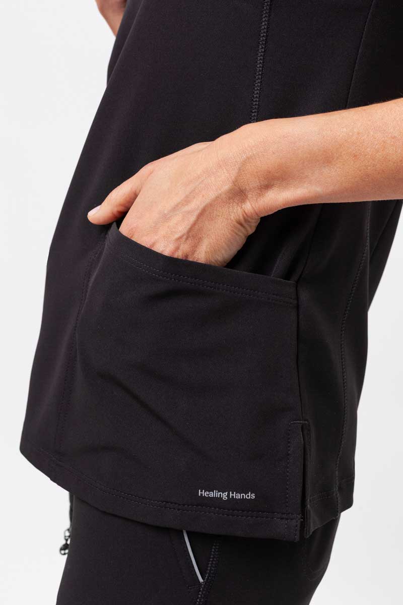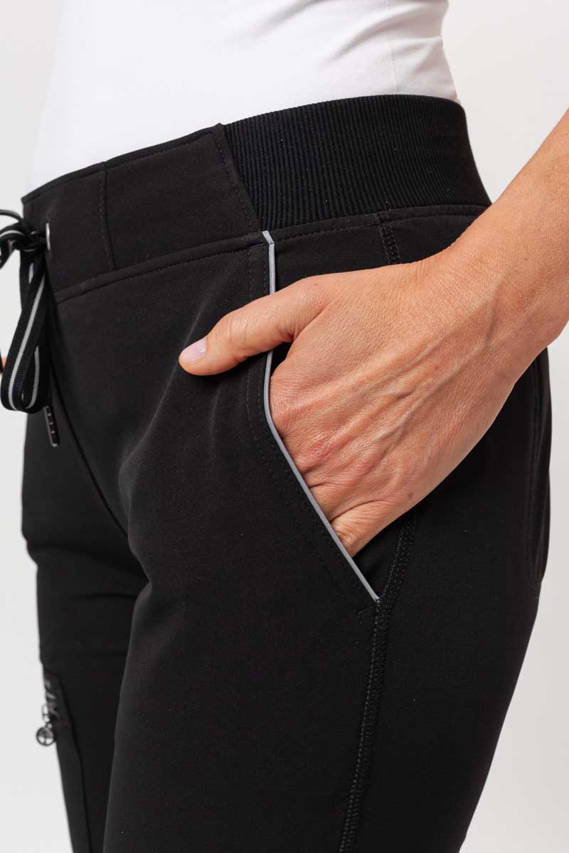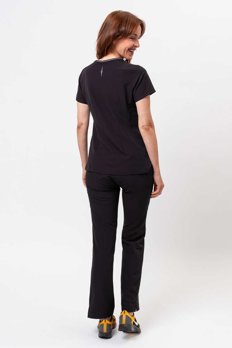 Lemovania sa jemne lesknú pri každom pohybe a priliehavý strih blúzky aj nohavíc dodáva uniforme ľahko športový, moderný charakter. Výstrih na zips, tvarujúce švy a jemné detaily na blúzke zvýrazňujú postavu a dodávajú jej sofistikovaný nádych, zatiaľ čo rovné nohavice s reflexnými lemami pri vreckách a dvojfarebnou šnúrkou vytvárajú jednotnú, harmonickú líniu. Päť praktických vreciek pojme všetko, čo počas práce potrebuješ, a mäkká tkanina s 4-smerným pružením odvádza vlhkosť, zachováva farbu a zaručuje pohodlie počas celého dňa. Tento komplet je spojením komfortu, funkčnosti a štýlu – uniforma, ktorá skutočne priťahuje pozornosť.