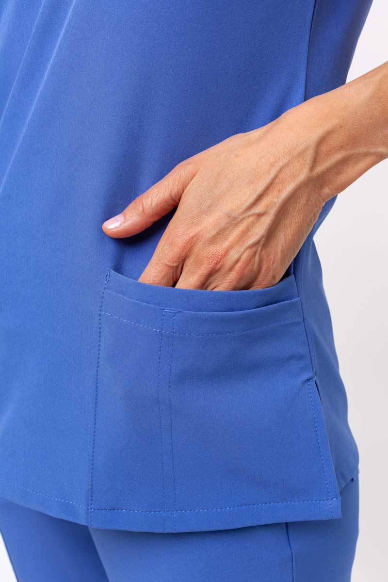 Dobre ušitá blúzka a nohavice s trendovým strihom tvoria dokonalý pár. Taký, ktorý vám umožní pracovať voľne, pohodlne celé hodiny a cítiť sa bezchybne. Ak práve toto hľadáte, súprava Valiant vás zaujme. Ide o kombináciu joggerových nohavíc a blúzky s výstrihom do V, ženským pásom a jemne rozšírenou spodnou časťou. Súprava je vyrobená z recyklovanej tkaniny, ktorá je mäkká, saténová na dotyk, nemačkavá, neabsorbuje vlhkosť a rýchlo schne. Vďaka prídavku spandexu sa dokonale prispôsobí vášmu telu a vašim pohybom, čo zaručuje úplné pohodlie v každej situácii. Súprava Valiant je k dispozícii v niekoľkých žiarivých farbách.
