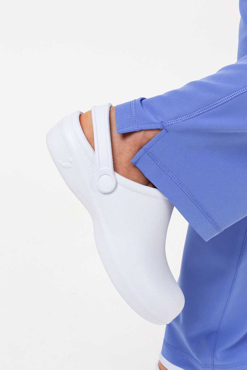 Retro v modernom prevedení – presne tak vyzerajú nohavice Nisha. Rovná nohavica a jemné, mierne reflexné lemovanie pri vreckách a na šnúrke dodávajú modelu charakter a zvýrazňujú líniu strihu. Elastická šnúrka v páse umožňuje prispôsobiť nohavice dokonale postave, zatiaľ čo päť praktických vreciek – vrátane cargo vrecka s kovovým logom – pojme všetky potrebné drobnosti. Mäkká, 4-smerne pružná tkanina odvádza vlhkosť a zachováva farbu bez ohľadu na náročnosť dňa. Nisha sú nohavice, ktoré spájajú funkčnosť, pohodlie a jemne športový retro štýl – ideálne samostatne alebo v kombinácii s blúzkou Sonia či Skyler.