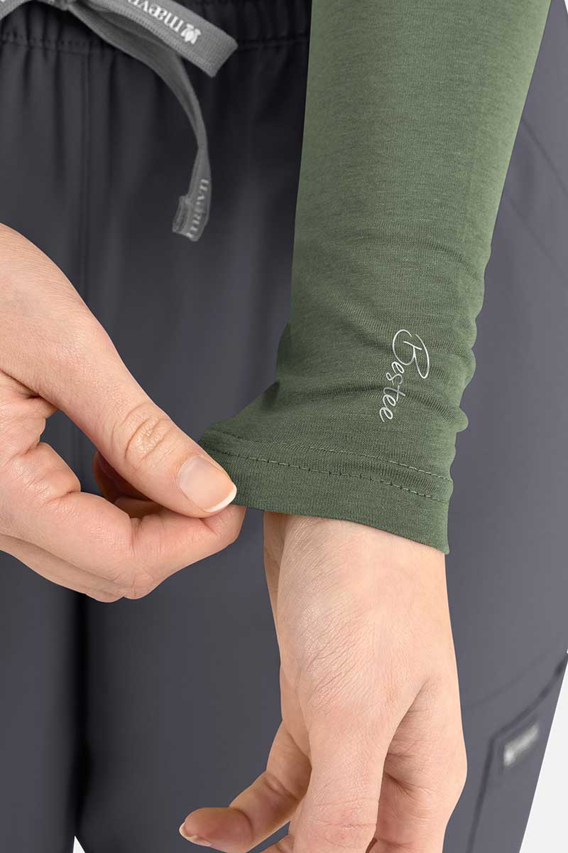 Už žiadna sivosť a monotónnosť, farebné tričká Maevn Bestee preberajú vládu! Sú k dispozícii v širokej škále farieb a ich výhodou je, že vám dodajú energiu aj počas zamračených dní. Okrúhly výstrih s dlhými rukávmi a ozdobným štítkom na ľavom ramene sú ideálne pod zdravotnú blúzku alebo zásteru. Elastická lycrová tkanina vám ponúka príjemný strih a jemný lesk. Intenzívna zelená, sýtočervená alebo tlmená biela? Vyberte si farbu, ktorá bude každý deň vyhovovať vašej nálade.