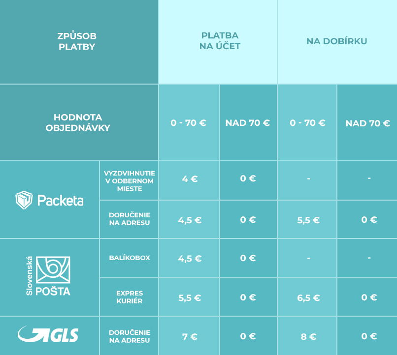 Pri objednávke, ktorej hodnota je viac ako 70 € je doprava ZADARMO.