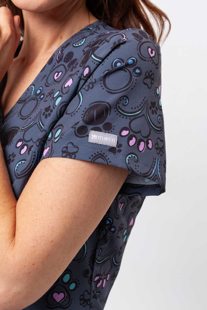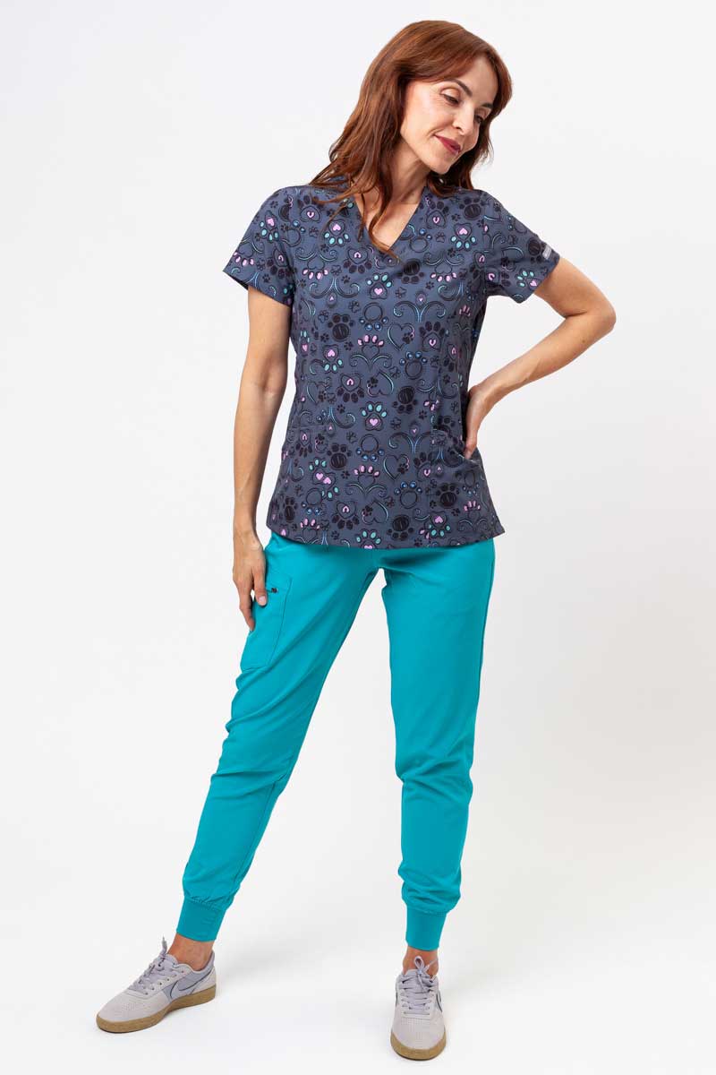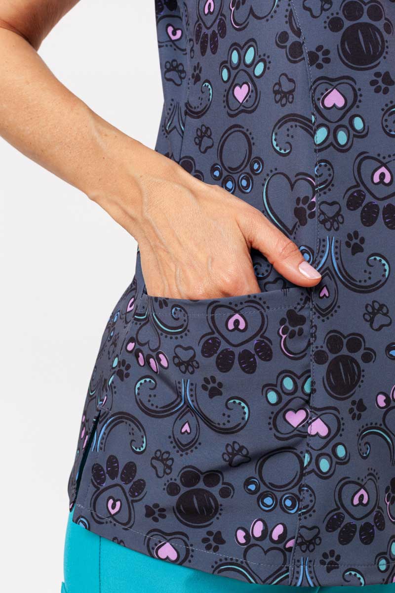 Vyskúšaj niečo nové s halenkou, ktorá spája výraznú potlač s prepracovaným strihom. Jemne zaoblený výstrih v tvare písmena V dodáva ľahkosť a tvarujúce švy vpredu decentne zvýrazňujú siluetu. Priedušný materiál s prídavkom spandexu zaručuje plnú voľnosť pohybu a pohodlie počas celého dňa. Ventilačný systém sa stará o sviežosť, zatiaľ čo zosilnené vrecká a dvojité švy poskytujú spoľahlivú odolnosť. Tri praktické vrecká umožňujú mať všetko potrebné vždy poruke. Je to spojenie funkčnosti a moderného štýlu, ktoré premení každodennú uniformu na niečo výnimočné.