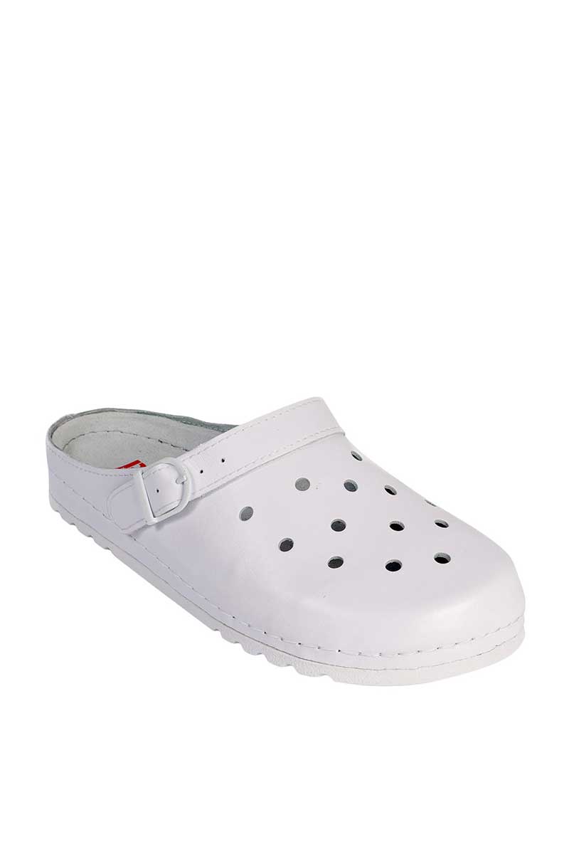 Šľapky navrhnuté pre tých, ktorí trávia dlhé hodiny v pohybe a od obuvi očakávajú viac než len „je pohodlná“. Kožený zvršok umožňuje nohám dýchať, zabezpečuje prirodzený komfort a eliminuje problémy typické pre syntetické materiály. Mäkká podrážka z peny MEMORY jemne podporuje chodidlo presne tam, kde je to potrebné – bez pocitu prepadania. Tvarovaná stielka a široká špička pomáhajú udržiavať správne postavenie chodidiel a znižujú riziko bolestí a deformácií. Protišmyková gumová podrážka dodáva istotu kroku aj na šmykľavom povrchu a jednoduchá údržba zabezpečuje, že šľapky si dlho zachovajú svieži a profesionálny vzhľad. Ide o model, ktorý nenápadne dbá o komfort – bez kompromisov a bez zbytočnej pozornosti.