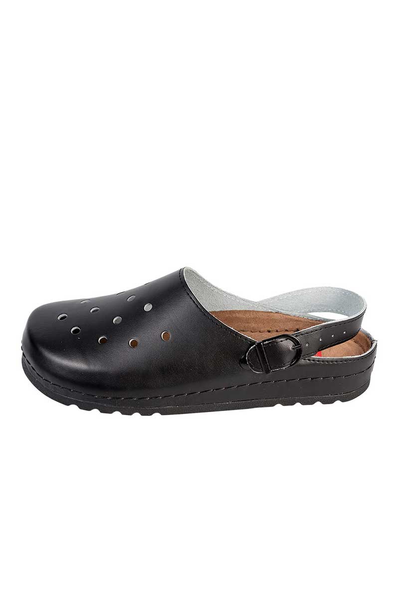 Šľapky navrhnuté pre tých, ktorí trávia dlhé hodiny v pohybe a od obuvi očakávajú viac než len „je pohodlná“. Kožený zvršok umožňuje nohám dýchať, zabezpečuje prirodzený komfort a eliminuje problémy typické pre syntetické materiály. Mäkká podrážka z peny MEMORY jemne podporuje chodidlo presne tam, kde je to potrebné – bez pocitu prepadania. Tvarovaná stielka a široká špička pomáhajú udržiavať správne postavenie chodidiel a znižujú riziko bolestí a deformácií. Protišmyková gumová podrážka dodáva istotu kroku aj na šmykľavom povrchu a jednoduchá údržba zabezpečuje, že šľapky si dlho zachovajú svieži a profesionálny vzhľad. Ide o model, ktorý nenápadne dbá o komfort – bez kompromisov a bez zbytočnej pozornosti.