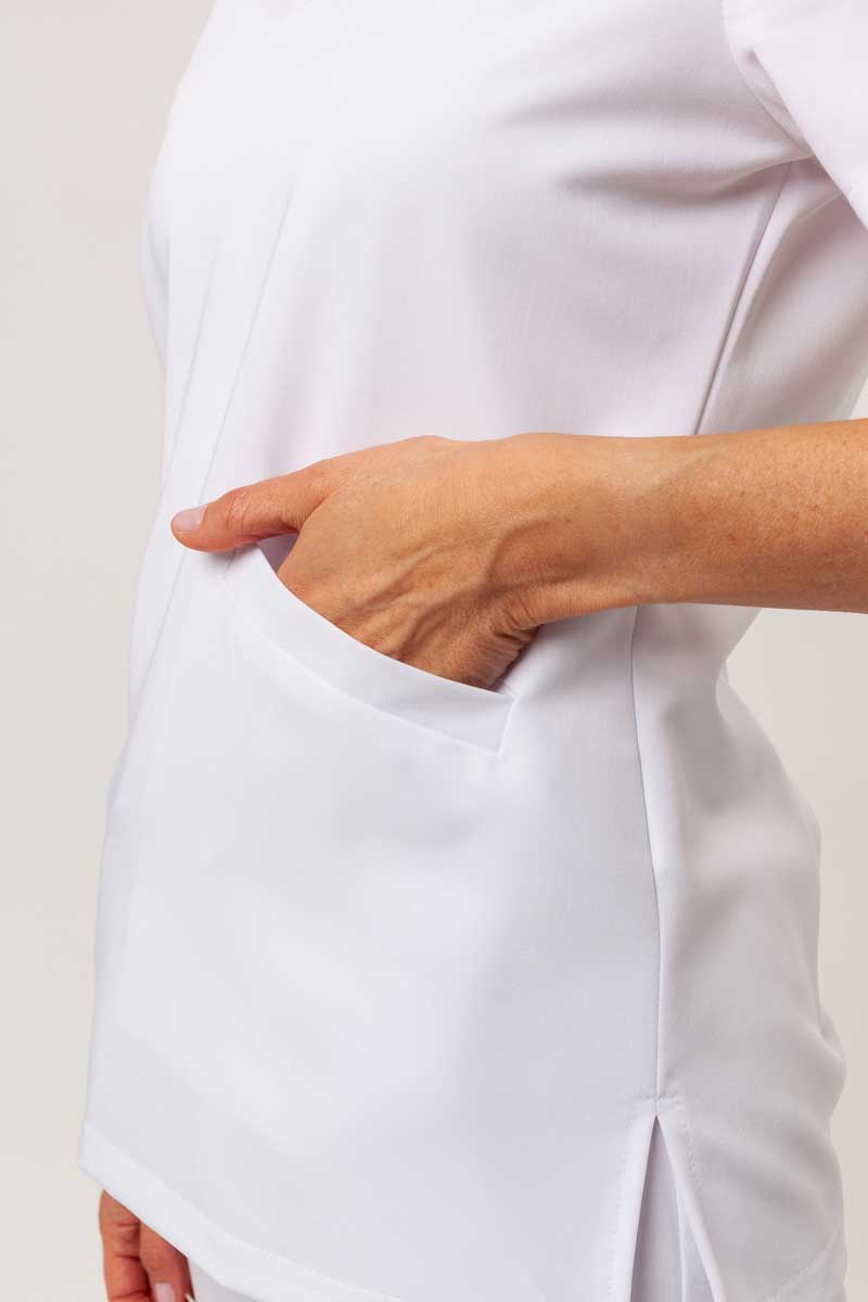 Najrýchlejší nápad na pracovný outfit je… súprava, ktorú máš po ruke. Ale predsa nechceš obmedzovať len na rýchlosť. Záleží na dokonalom štýle, kvalite spracovania a komforte nosenia. Tieto všetky kritériá spĺňa súprava zdravotníckeho oblečenia z kolekcie Sunrise Uniforms Premium, ktorá spája modernú blúzu s nadčasovými nohavicami s rovnými, smerom nadol zúženými nohavicami. Horná časť s výstrihom do V, šikmými vreckami a zosilnenými prešitím na kľúčových miestach dokonale korešponduje s dolnou časťou, vybavenou funkčnými vreckami a širokou gumou v páse, s ďalšou šnúrkou na dokonalé prispôsobenie. Súprava je vyrobená z kvalitnej, pokožke príjemnej tkaniny s prídavkom elastanu, v ktorej ti bude pohodlne počas celého dňa.
