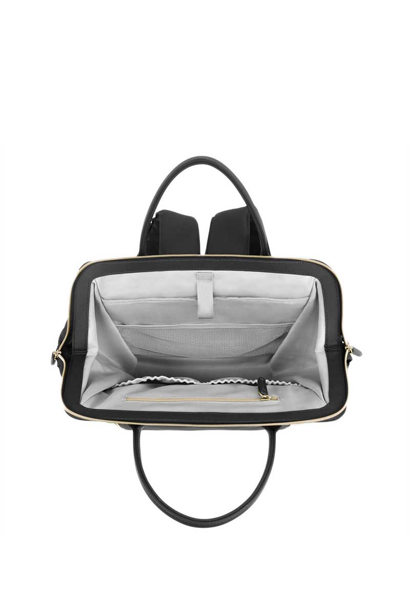 Taška ReadyGo sa vyznačuje špeciálnou vystuženou konštrukciou, ktorá umožňuje mimoriadne široké otváranie hlavného vrecka. Nezatvára sa nekontrolovateľne. Môžete sa v ňom prehrabávať bez obáv. Taška má pohodlné držadlá na nosenie v ruke a 2 ramenné popruhy na nosenie ako batoh. Vďaka týmto riešeniam si môžete užívať pohodlie "voľných rúk". Množstvo vreciek, priehradiek a priečinkov robí z tašky mimoriadne praktický a užitočný atribút pre váš každodenný pracovný deň.