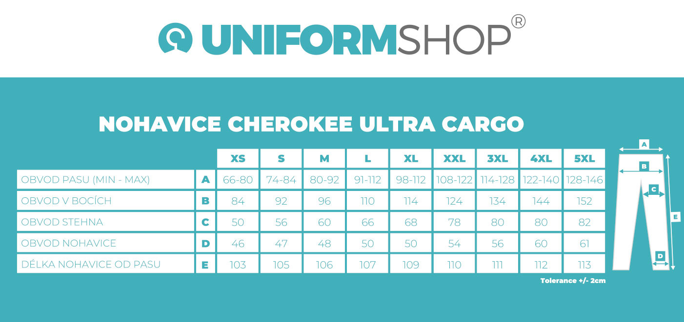 - Nášivka „Cherokee“ pri cargo vrecku