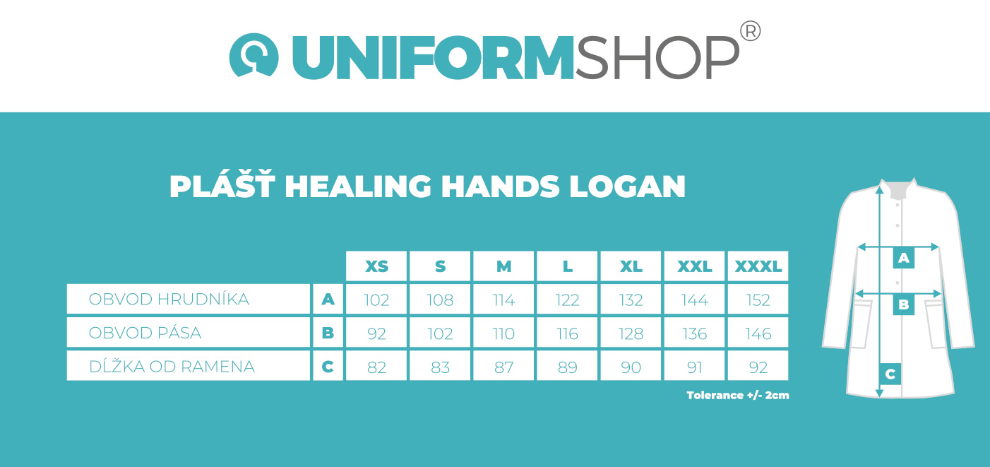 - Nášivka s logom "Healing Hands" na ľavom vrecku